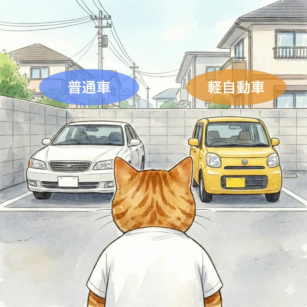 まず一番最初に確認するのが、自分の車が「普通車」か「軽自動車」かです。これ、分かっているようで、意外とちゃんと認識していない人が多いんですよ。